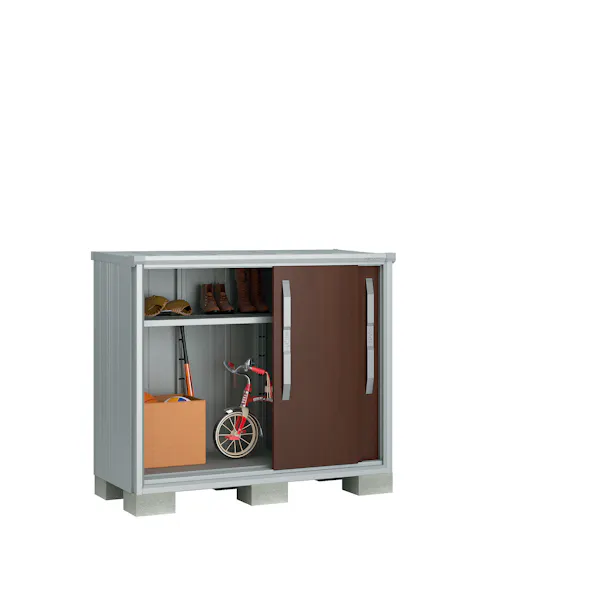 ■シャープなデザイン!木目柄2色!■開口部が業界No.1の広さ!■自由に配置できる分割棚。■収納物をホコリ、雨水から守る扉パッキン。■屋根、側壁に排水溝を設けて雨水を処理。