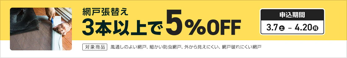ご来店時、係員に「網戸はりかえ」ご希望の旨お申し付けください。